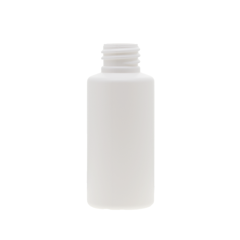 زجاجات أسطوانية بلاستيكية HDPE بيضاء سعة 50 مل مع رقبة 20/410